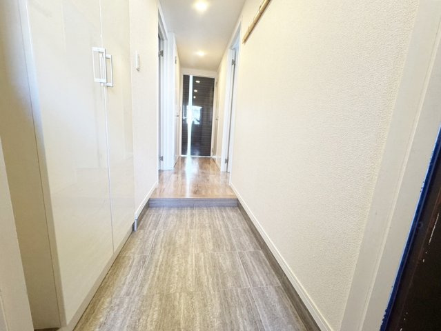 玄関には大きなシューズクローゼット付き。白に統一された明るい印象の玄関です。