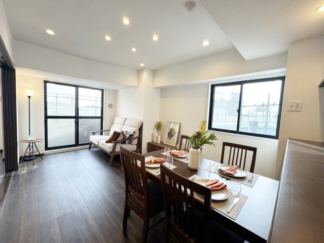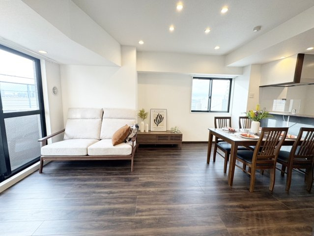 明るくゆとりのあるリビングは14.1帖。対面キッチンでご家族との会話も弾みます。