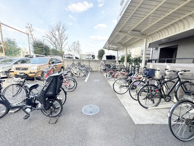 広々とした駐輪場と平面駐車場。 駐車場の空き状況はお問合せください。